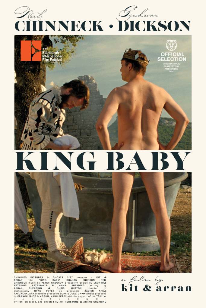 | SYNOPSIS | KING BABY is a darkly comic feature film about a ‘King’ and a ‘Servant’ who live, completely isolated, in the crumbling ruins of a castle surrounded by thick forest. Two contemporary men have rejected the modern world in favour of a life where they can say and do whatever they want. They play out a ludicrous daily cycle of pomp and ceremony with a punishingly unequal power dynamic. When the King dreams about a beguiling woman, he orders the Servant to create a mannequin Queen from the wood of a tree. The King marries the mannequin Queen and all seems better than ever in this strange dystopian Kingdom. Both men treat this wooden object as though she were ‘real’. Enchanted by his own creation, the Servant develops an ardent love for the Queen whilst the brutish King begins to treat her increasingly badly. Plagued by paranoia and disturbing nightmares of emasculation, the King relinquishes his crown to the Servant in a bid to regain a sense of peace. As a puppet leader, the Servant is still beholden to the King’s power until he sees an opportunity to improve the Kingdom and emancipate the Queen. He revolutionises the Kingdom with a new set of forward-thinking and liberal decrees. The power has truly shifted, but not necessarily for the better. What ensues is a whirlwind of isolation, madness, and murderous megalomania that puts two very different types of masculinity under scrutiny. |
